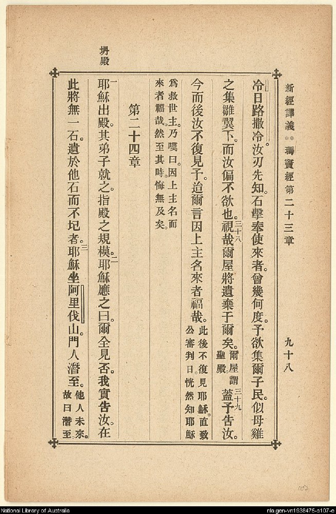 1907年新約四福音(新經譯義) 馬太福音 23 章 37 節到 24 章 3 節