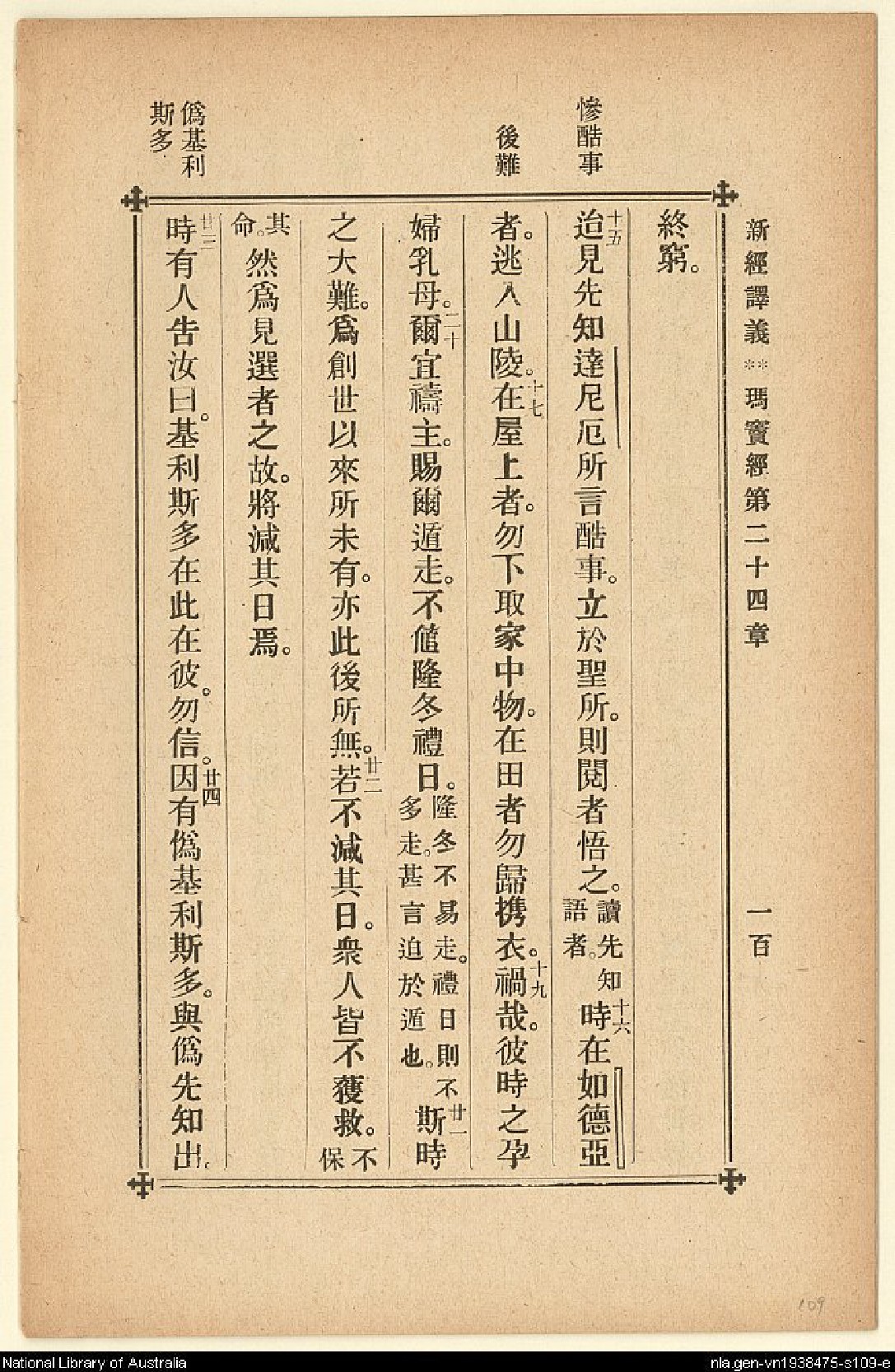 1907年新約四福音(新經譯義) 馬太福音 24 章 14 節到 24 章 24 節