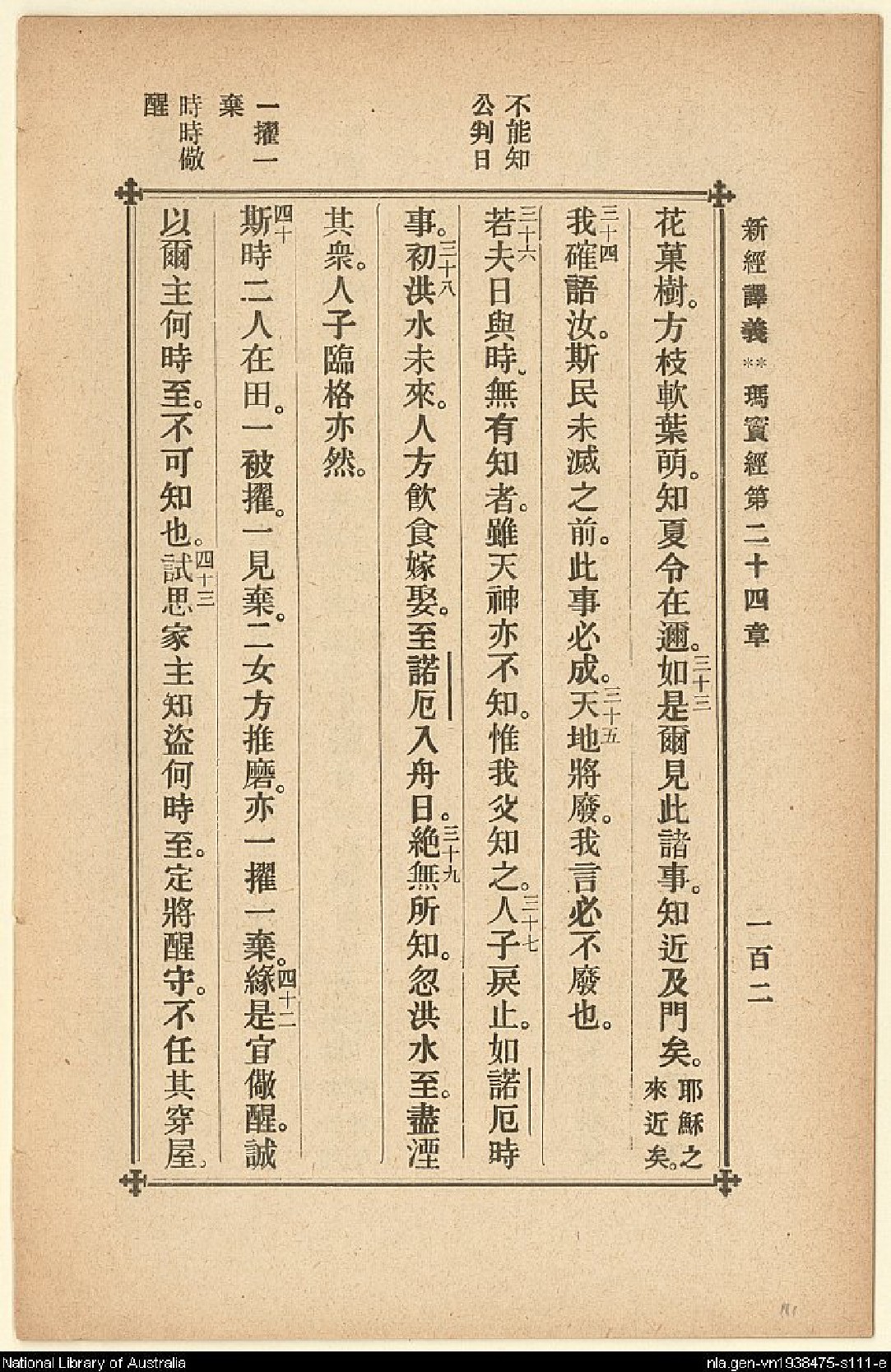 1907年新約四福音(新經譯義) 馬太福音 24 章 32 節到 24 章 43 節