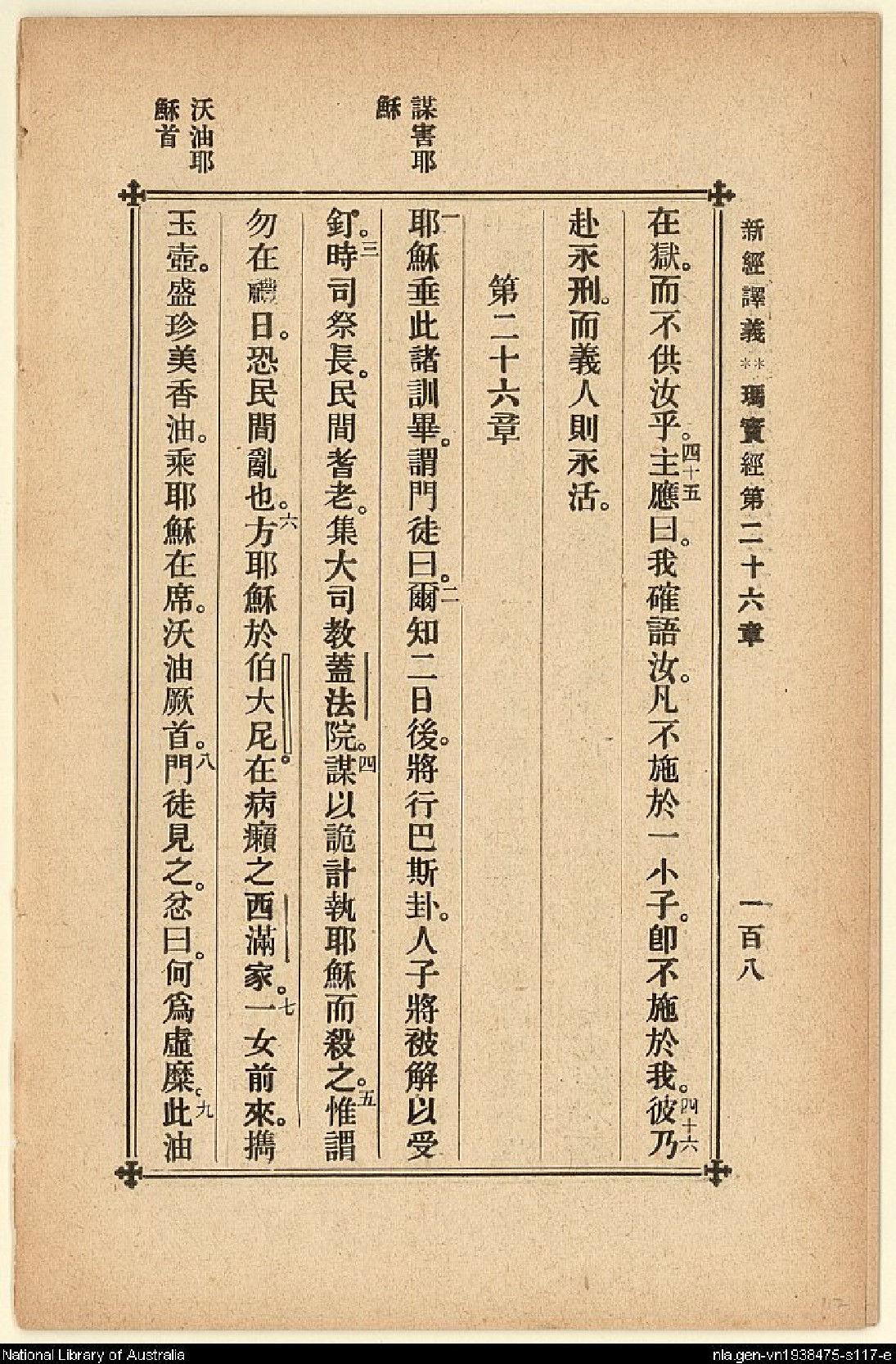 1907年新約四福音(新經譯義) 馬太福音 25 章 44 節到 26 章 9 節