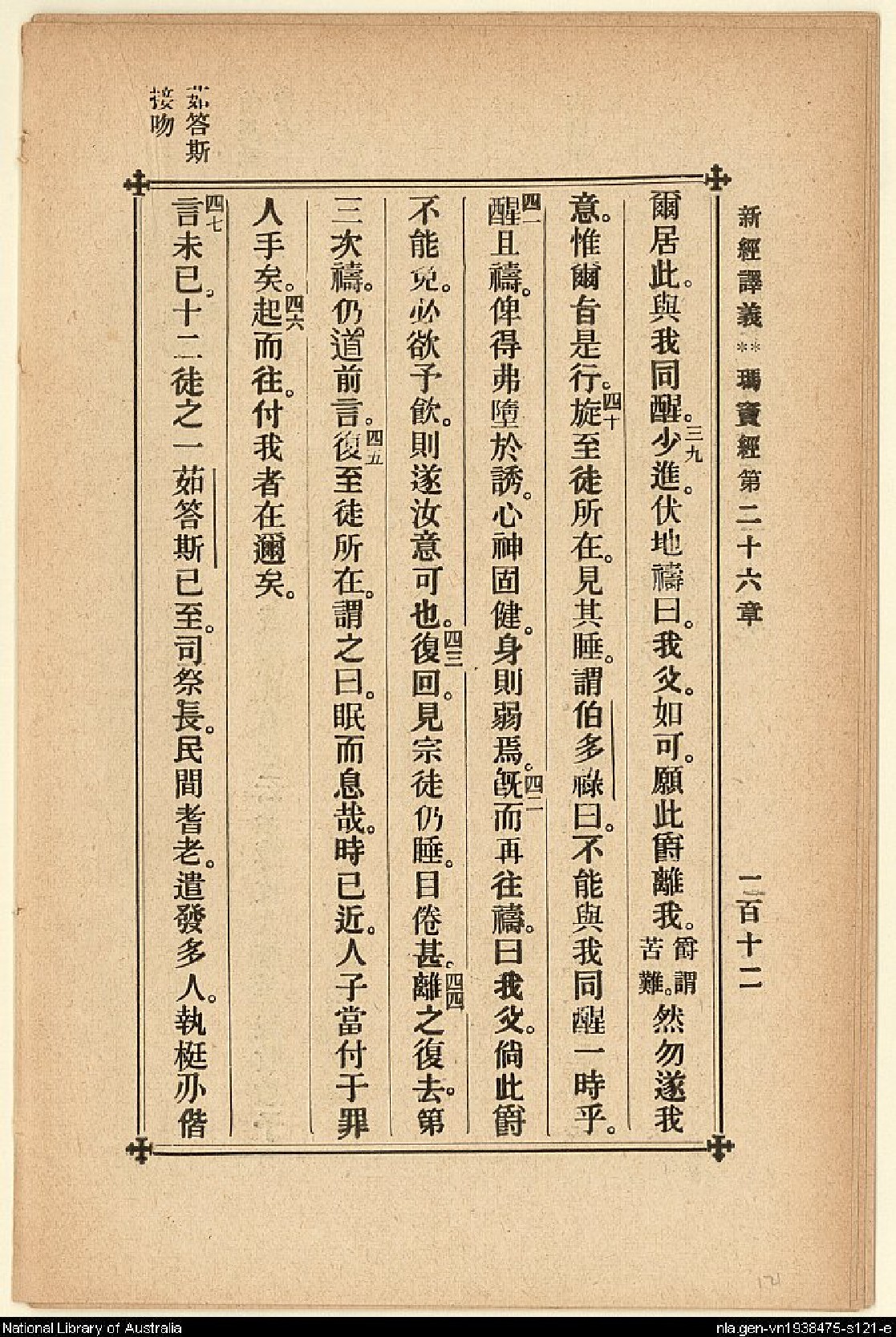 1907年新約四福音(新經譯義) 馬太福音 26 章 38 節到 26 章 47 節