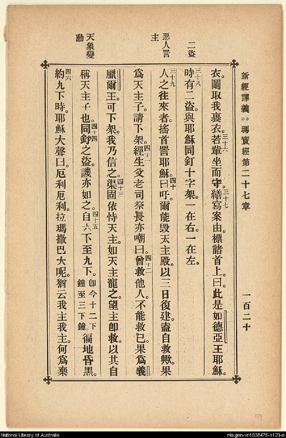 1907年新約四福音(新經譯義) 馬太福音 27 章 35 節到 27 章 46 節