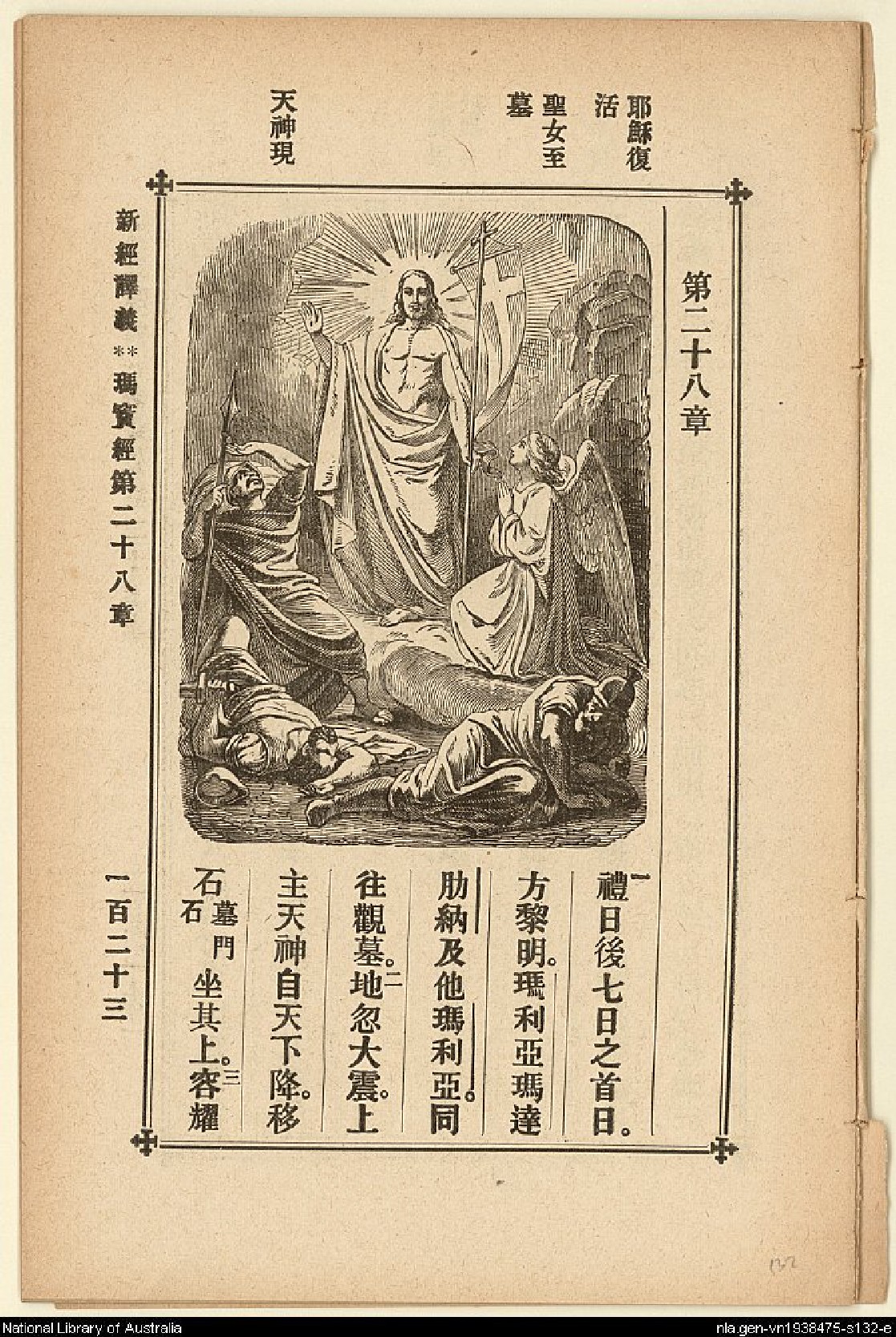 1907年新約四福音(新經譯義) 馬太福音 28 章 1 節到 28 章 3 節