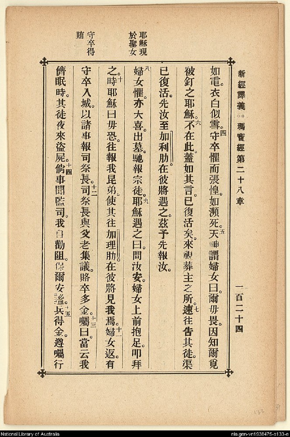 1907年新約四福音(新經譯義) 馬太福音 28 章 3 節到 28 章 15 節