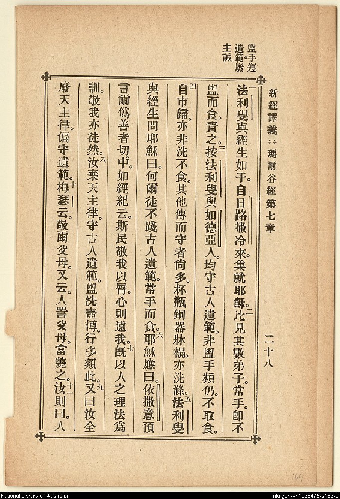 1907年新約四福音(新經譯義) 馬可福音 7 章 1 節到 7 章 11 節