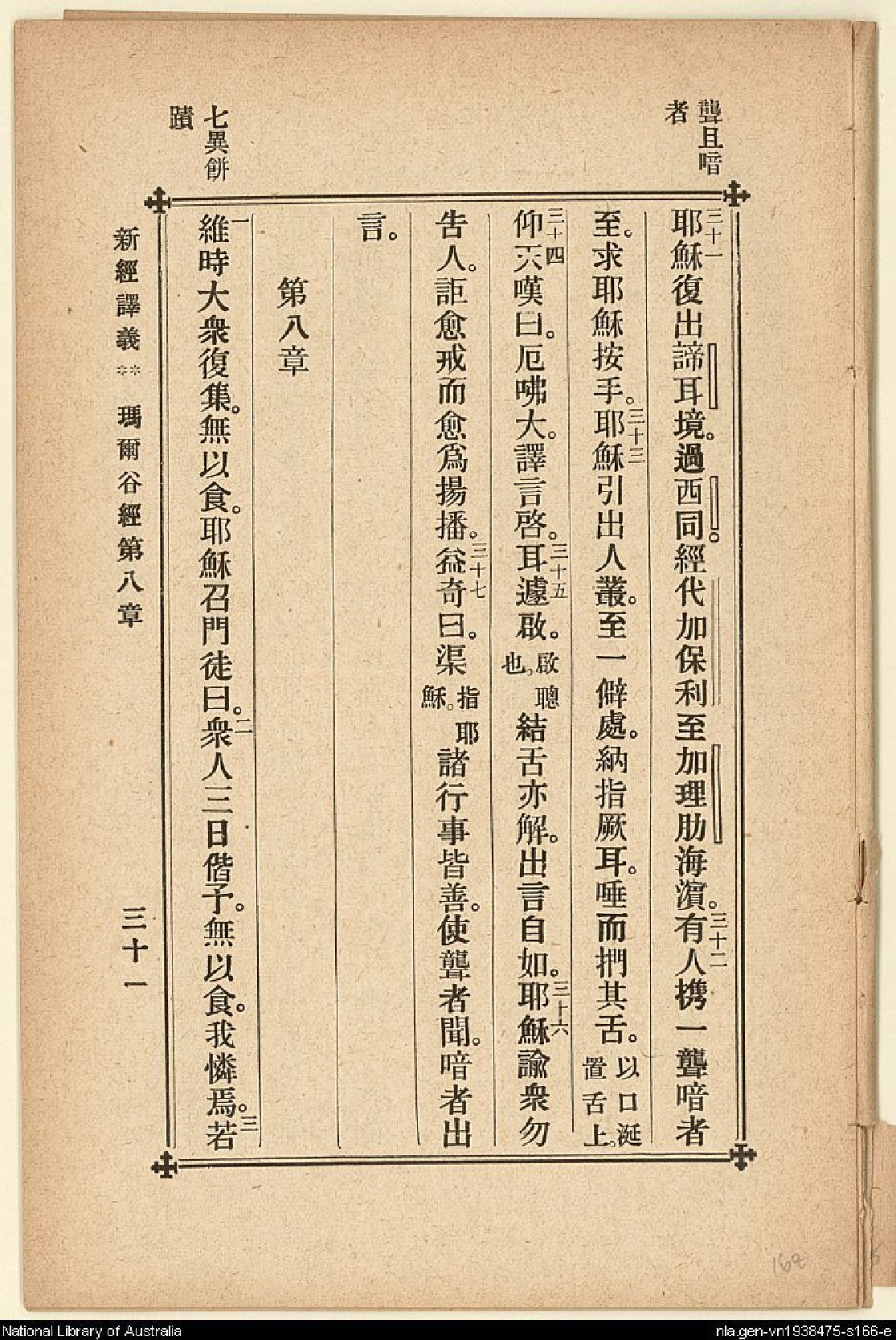 1907年新約四福音(新經譯義) 馬可福音 7 章 31 節到 8 章 3 節