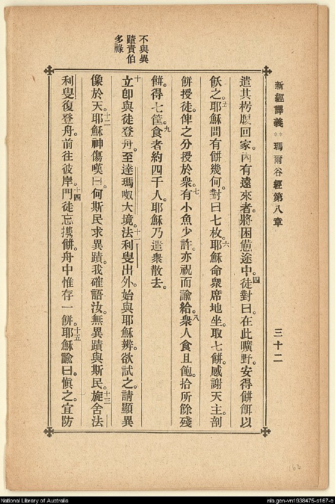 1907年新約四福音(新經譯義) 馬可福音 8 章 3 節到 8 章 15 節