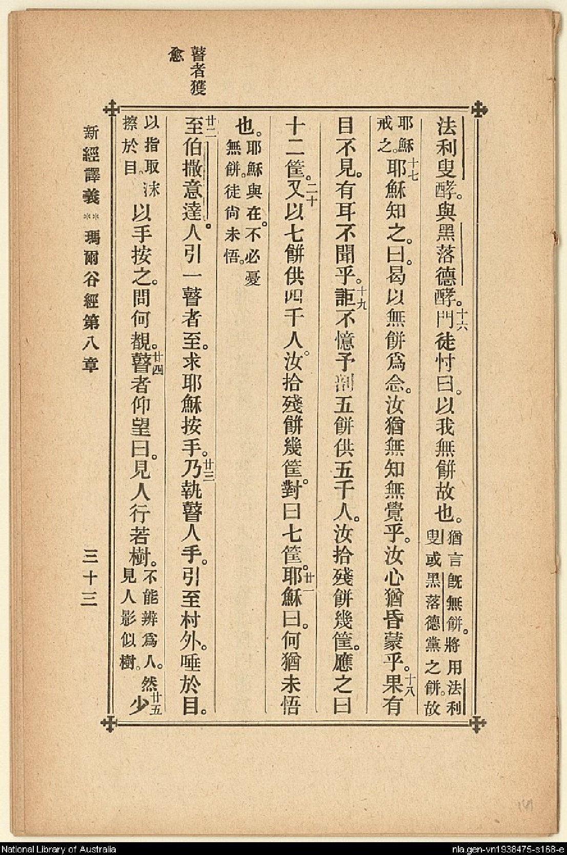1907年新約四福音(新經譯義) 馬可福音 8 章 15 節到 8 章 25 節
