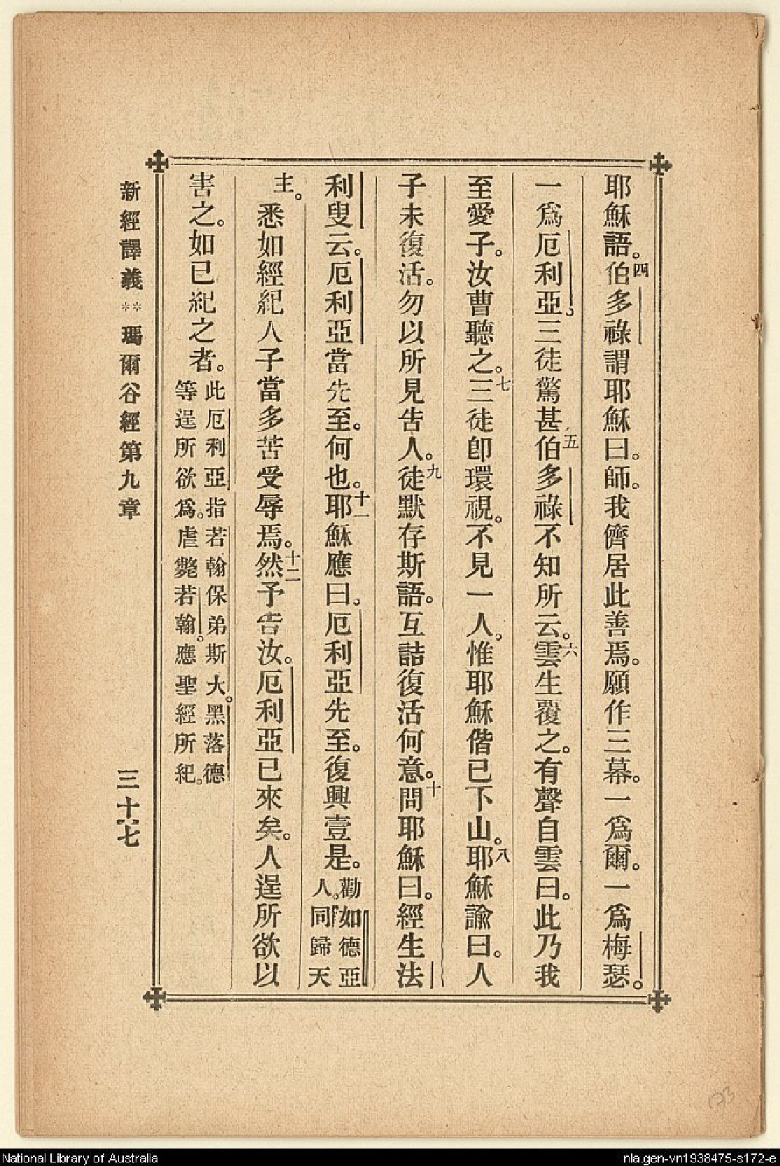 1907年新約四福音(新經譯義) 馬可福音 9 章 4 節到 9 章 12 節