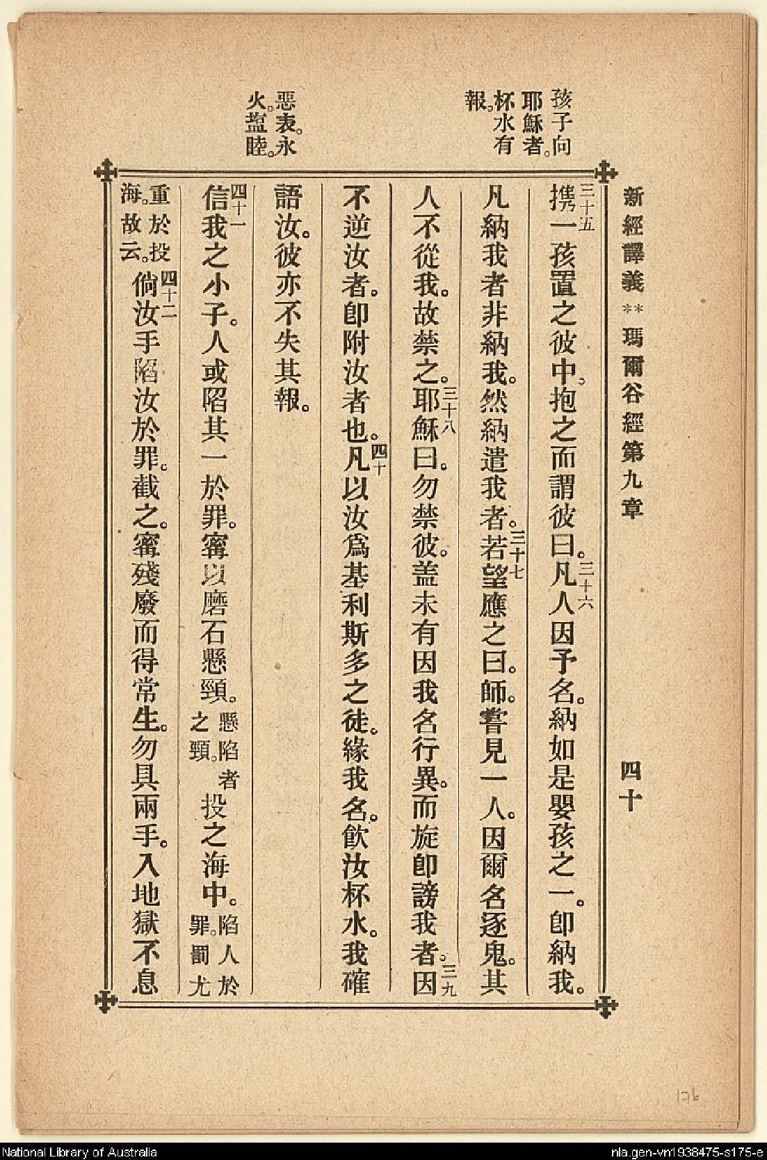 1907年新約四福音(新經譯義) 馬可福音 9 章 35 節到 9 章 42 節