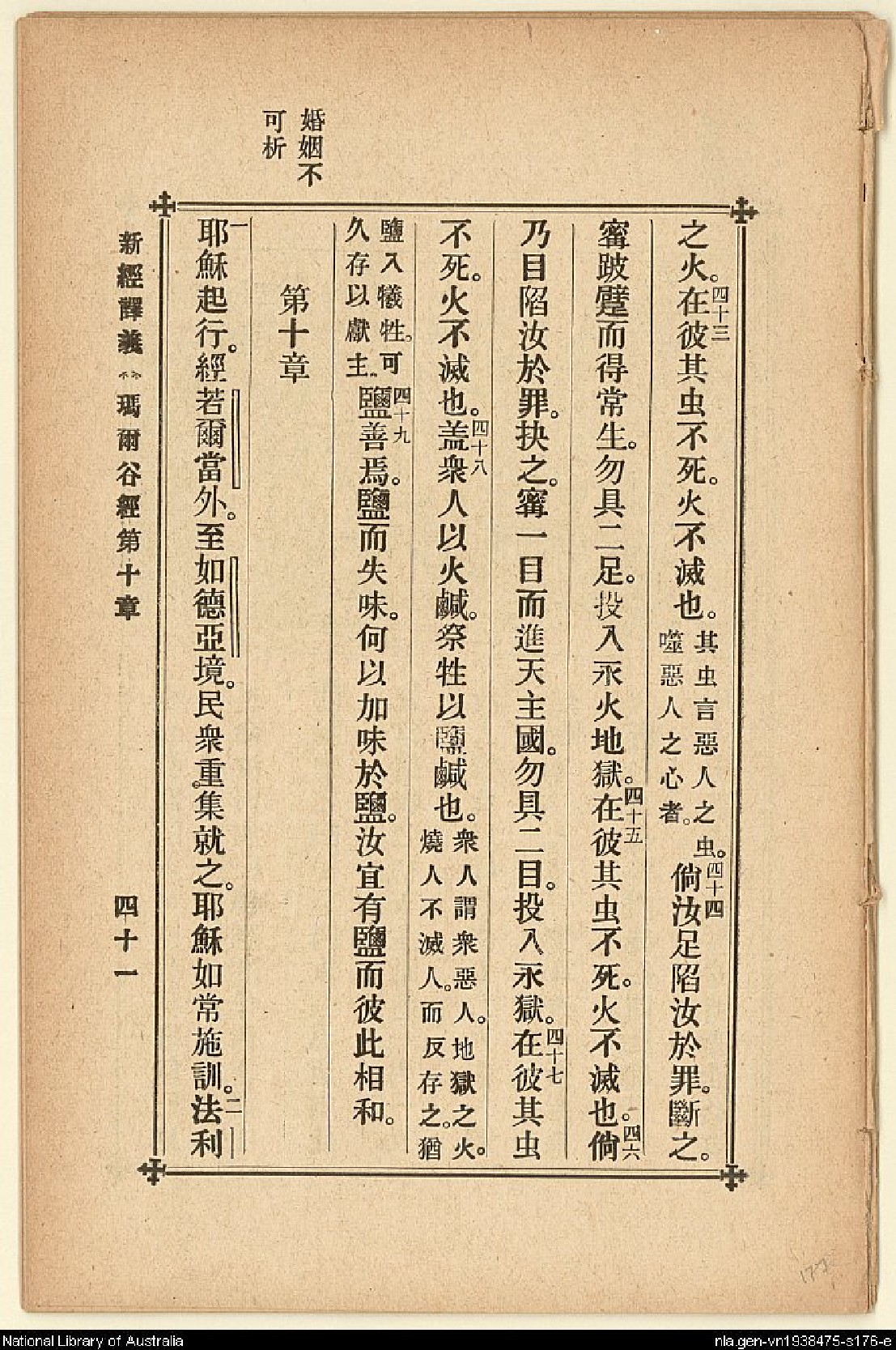 1907年新約四福音(新經譯義) 馬可福音 9 章 43 節到 10 章 2 節