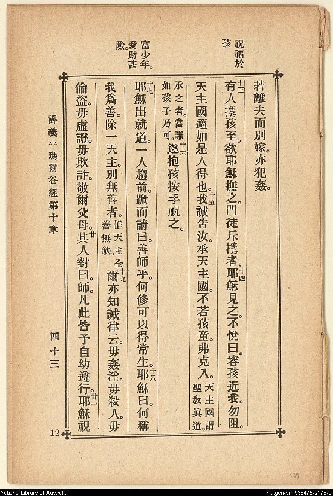 1907年新約四福音(新經譯義) 馬可福音 10 章 12 節到 10 章 21 節