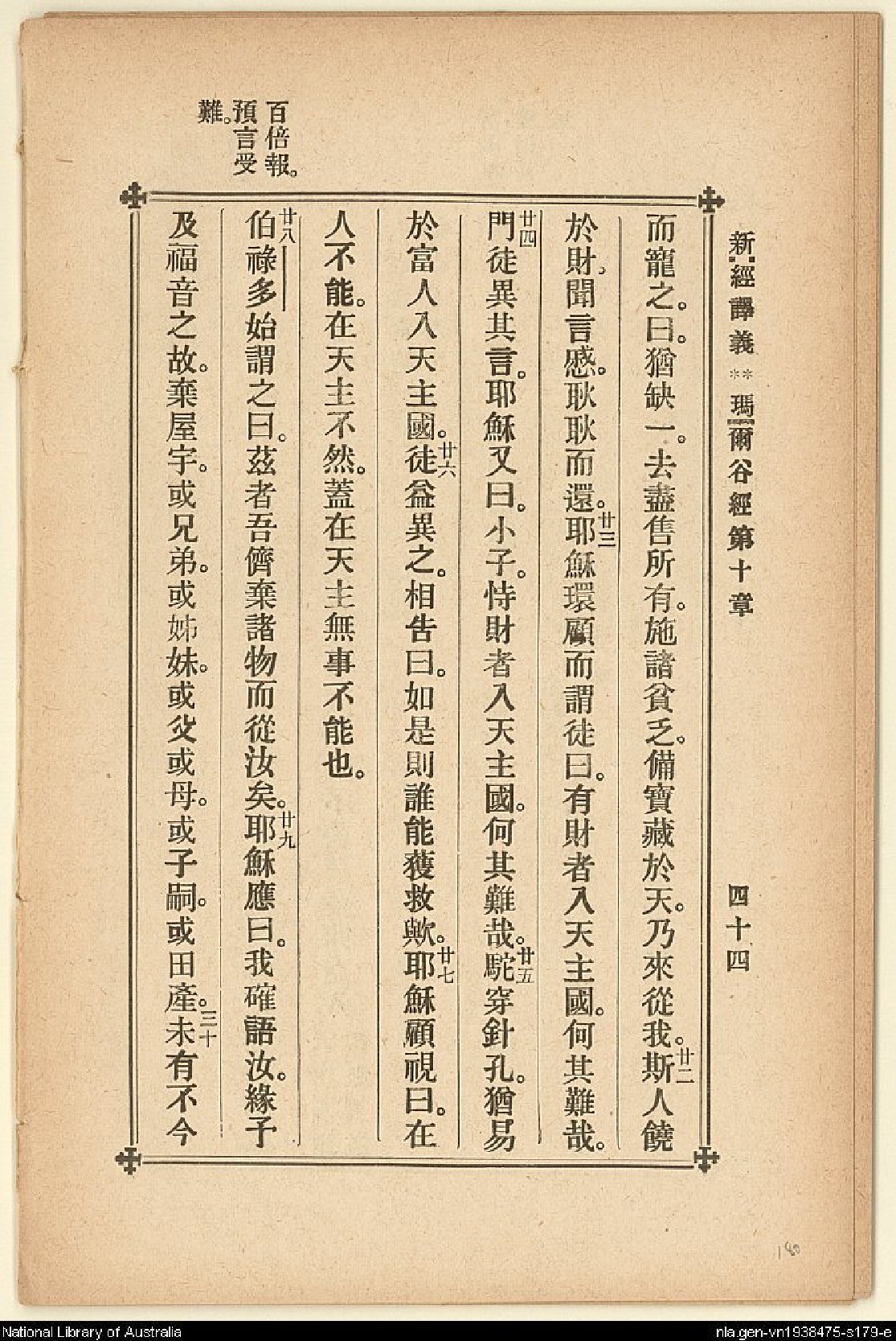 1907年新約四福音(新經譯義) 馬可福音 10 章 21 節到 10 章 30 節