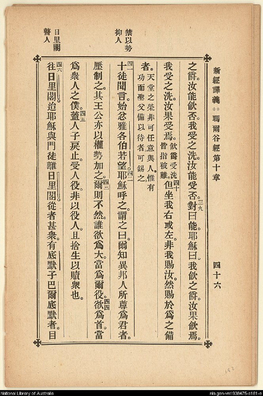 1907年新約四福音(新經譯義) 馬可福音 10 章 38 節到 10 章 46 節