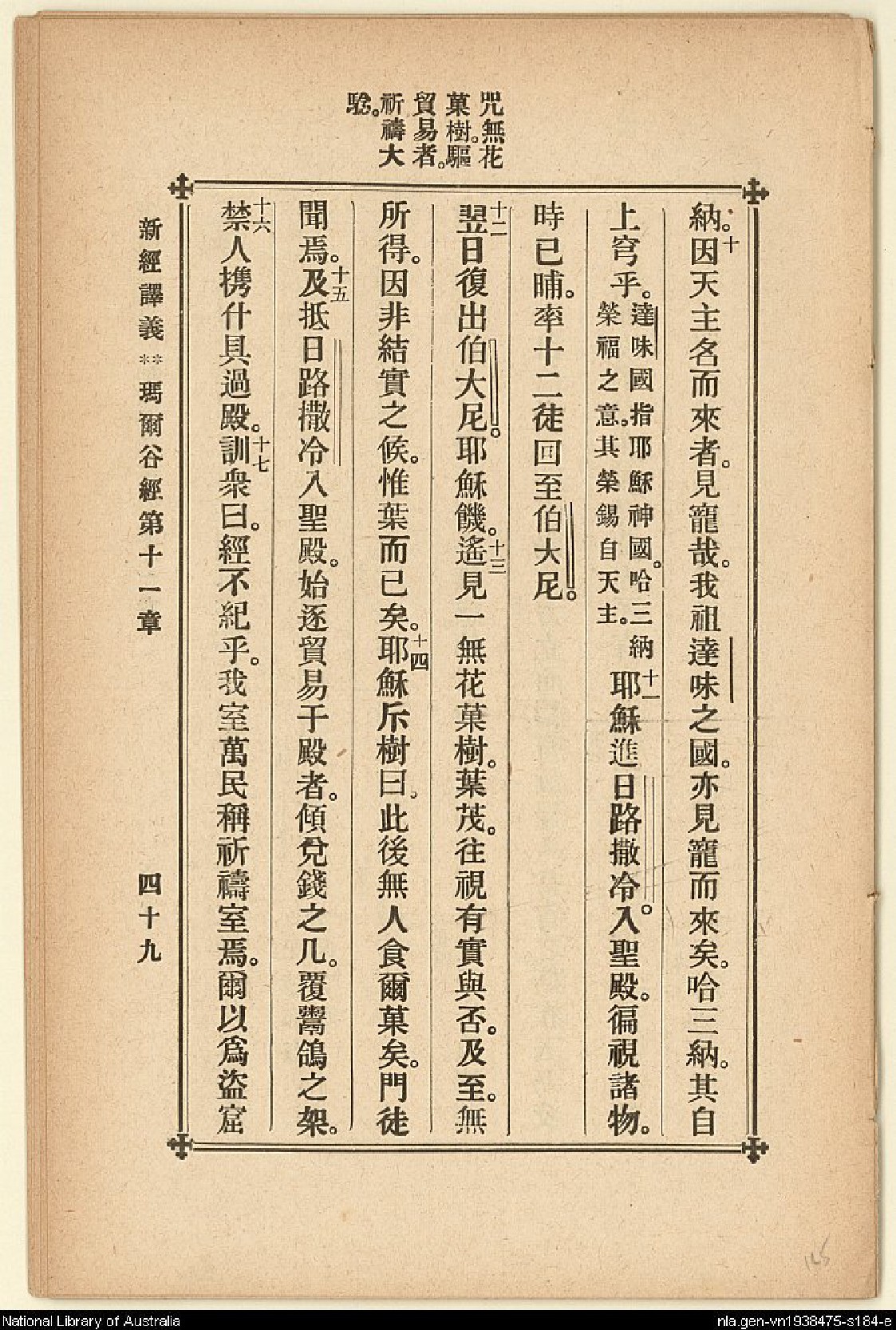 1907年新約四福音(新經譯義) 馬可福音 11 章 10 節到 11 章 17 節