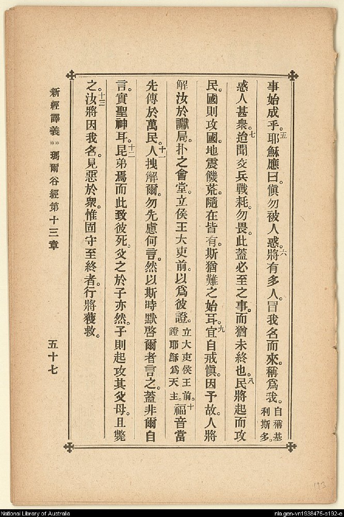 1907年新約四福音(新經譯義) 馬可福音 13 章 4 節到 13 章 13 節