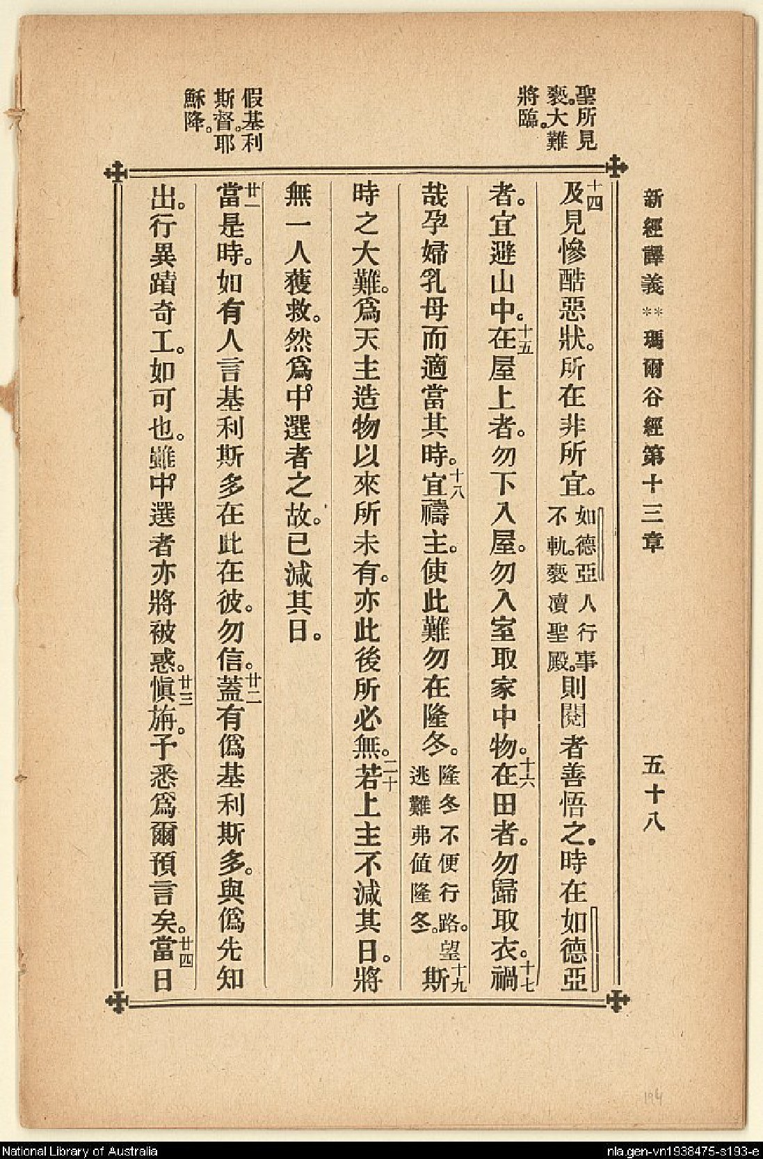 1907年新約四福音(新經譯義) 馬可福音 13 章 14 節到 13 章 24 節