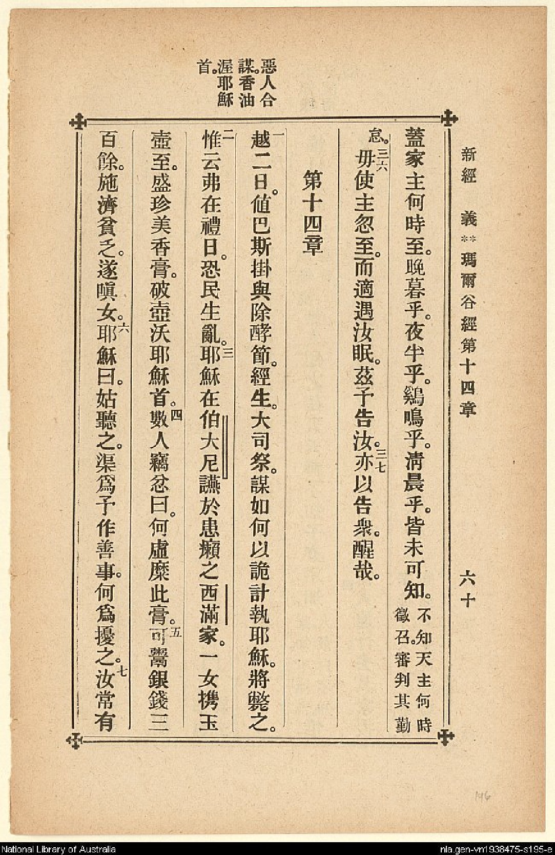 1907年新約四福音(新經譯義) 馬可福音 13 章 35 節到 14 章 7 節