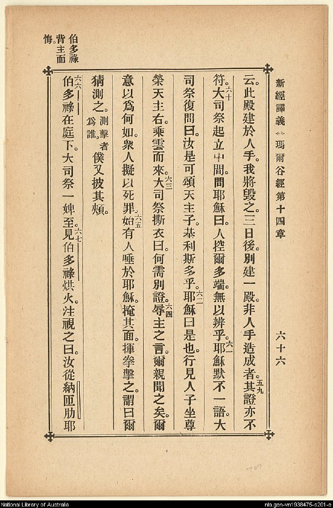 1907年新約四福音(新經譯義) 馬可福音 14 章 58 節到 14 章 67 節