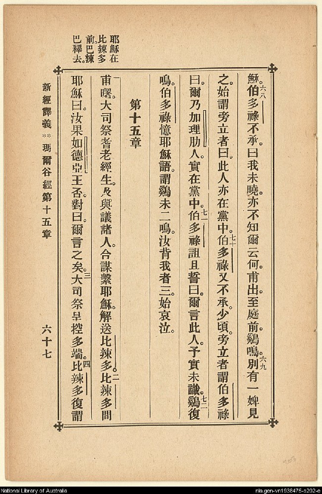 1907年新約四福音(新經譯義) 馬可福音 14 章 68 節到 15 章 4 節