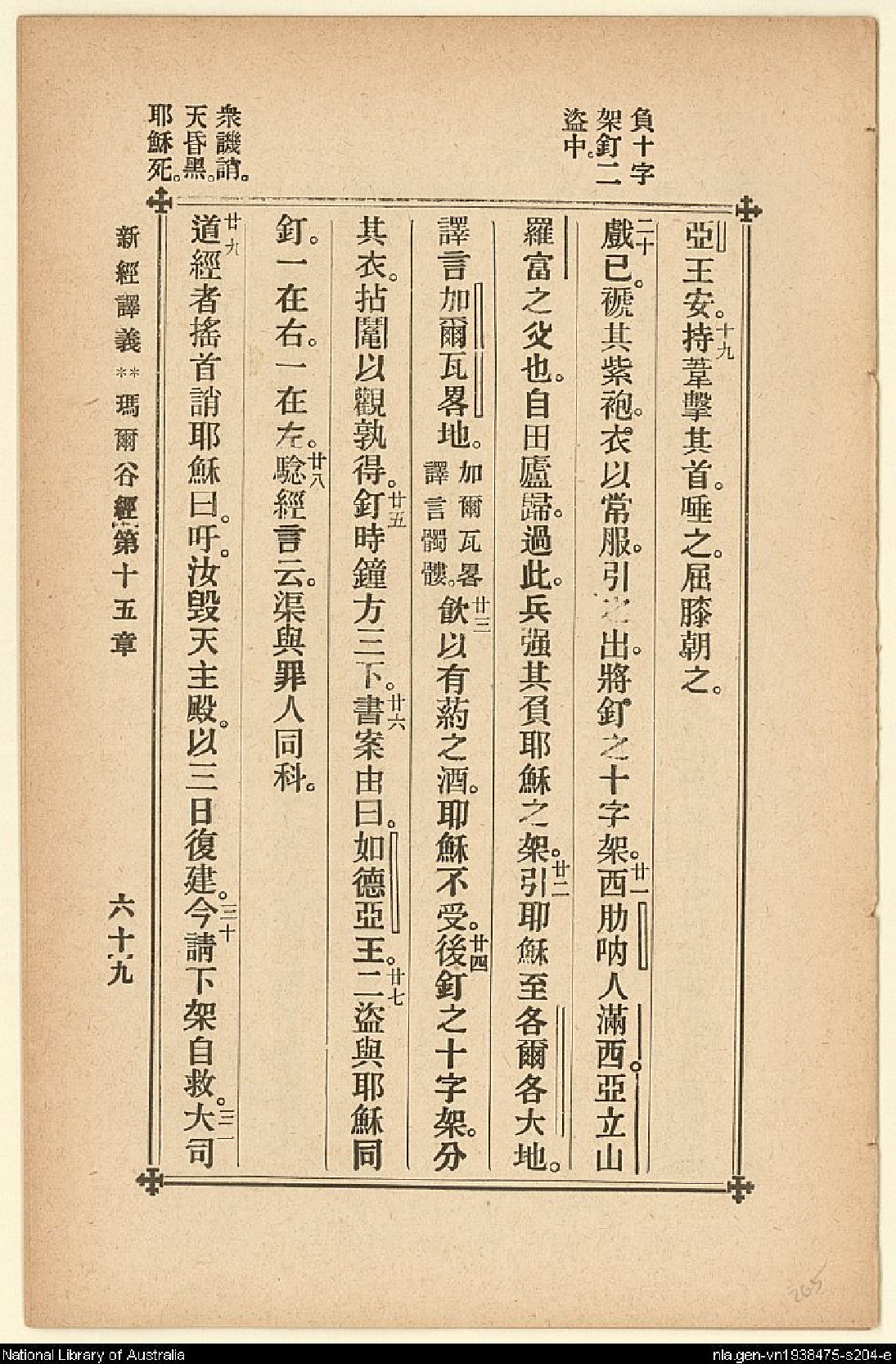 1907年新約四福音(新經譯義) 馬可福音 15 章 18 節到 15 章 31 節