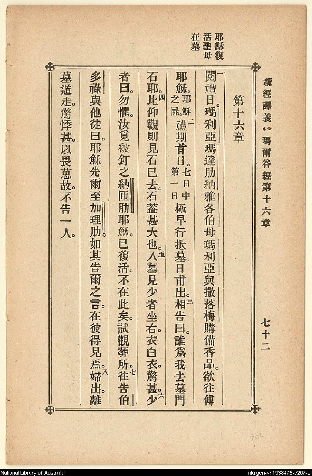1907年新約四福音(新經譯義) 馬可福音 16 章 1 節到 16 章 8 節