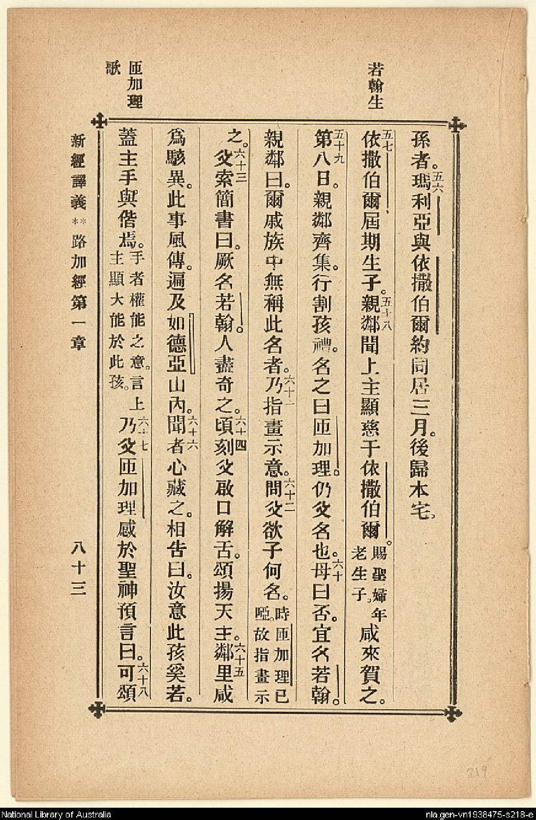 1907年新約四福音(新經譯義) 路加福音 1 章 56 節到 1 章 68 節