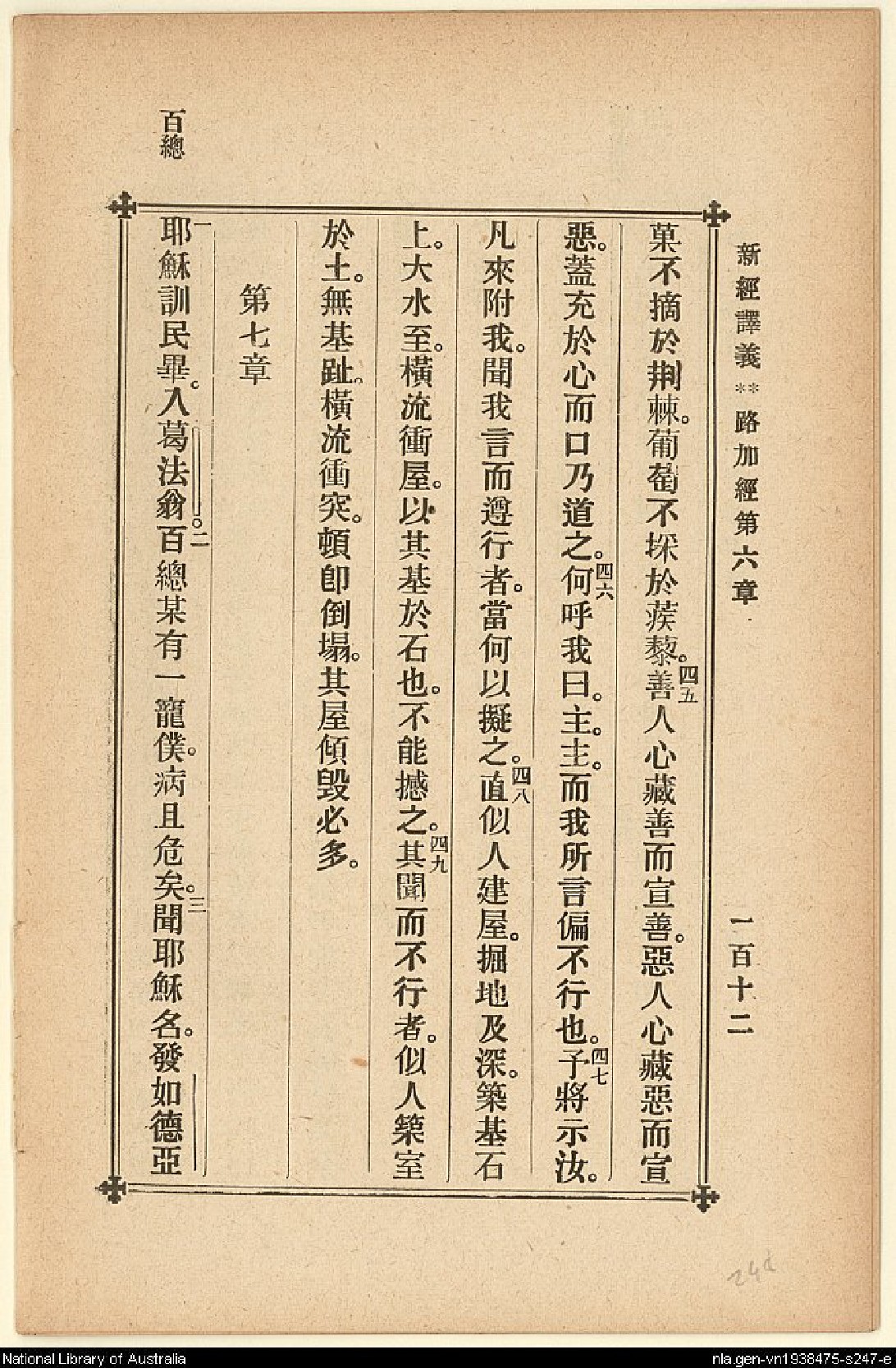 1907年新約四福音(新經譯義) 路加福音 6 章 44 節到 7 章 3 節