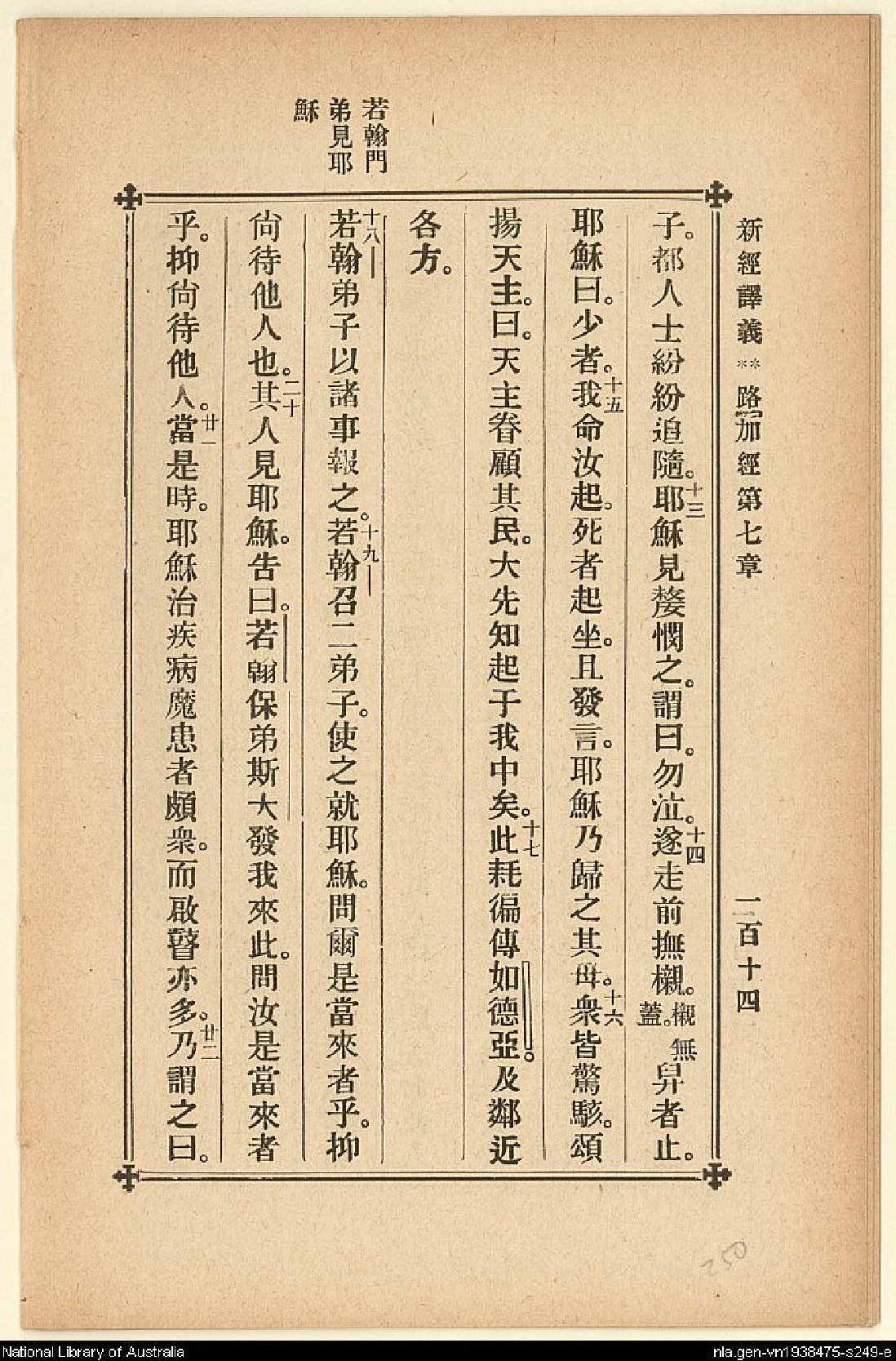 1907年新約四福音(新經譯義) 路加福音 7 章 12 節到 7 章 22 節