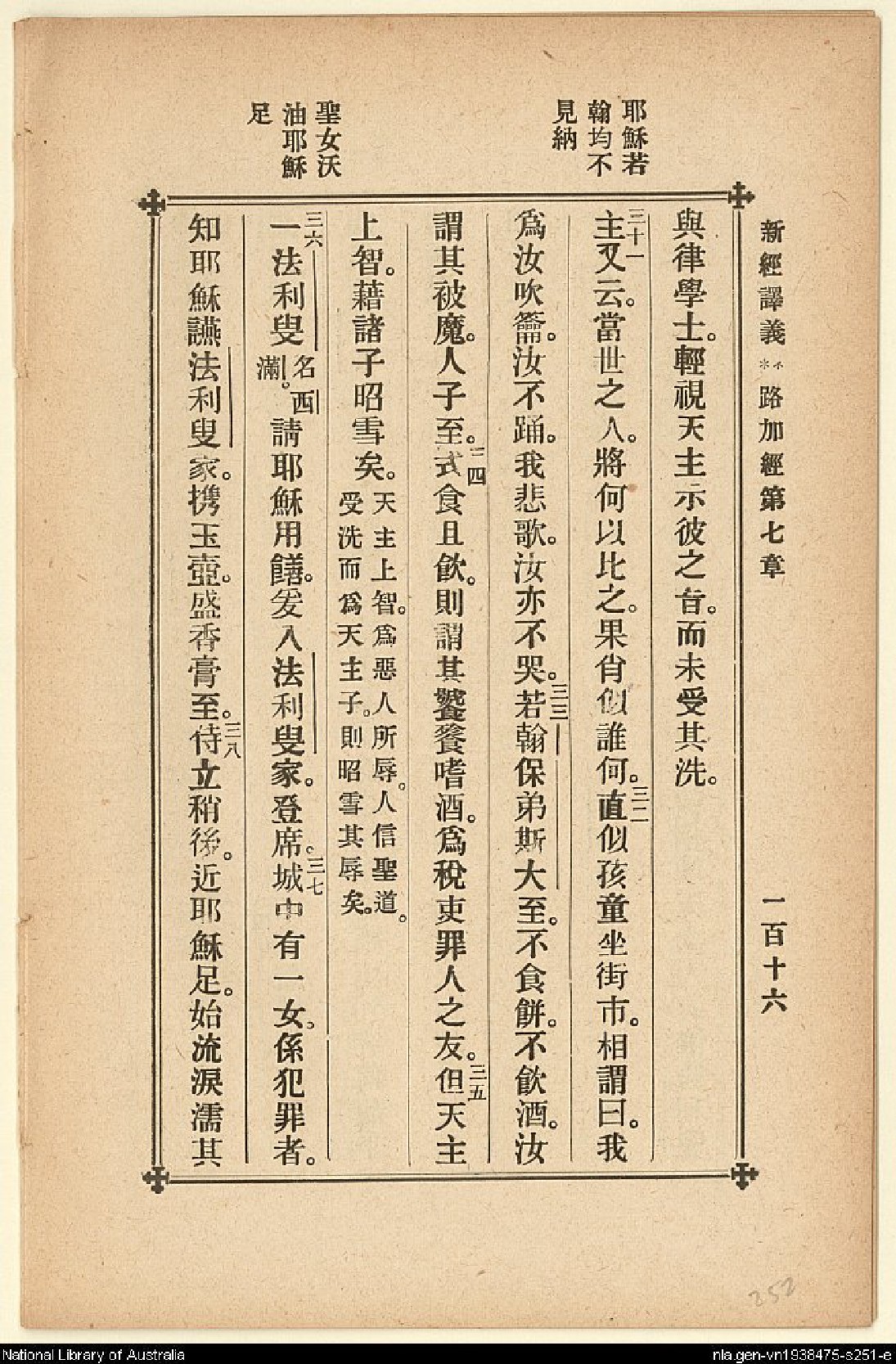 1907年新約四福音(新經譯義) 路加福音 7 章 30 節到 7 章 38 節