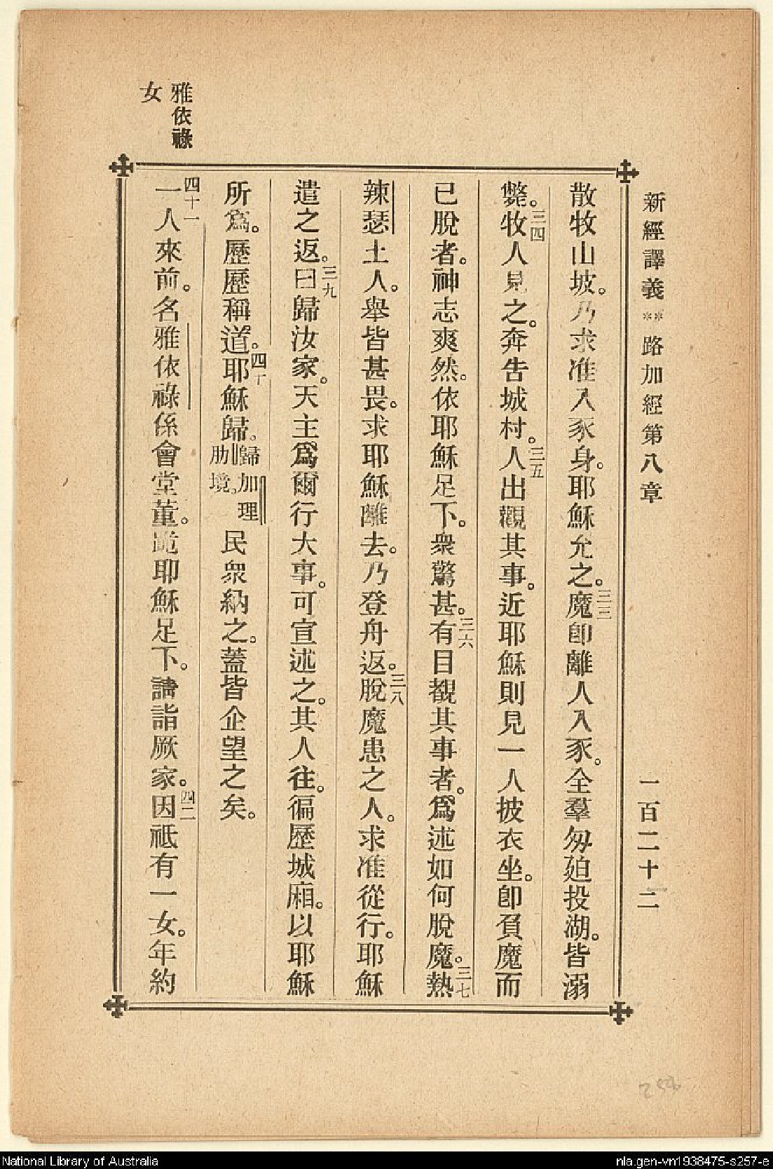 1907年新約四福音(新經譯義) 路加福音 8 章 32 節到 8 章 42 節