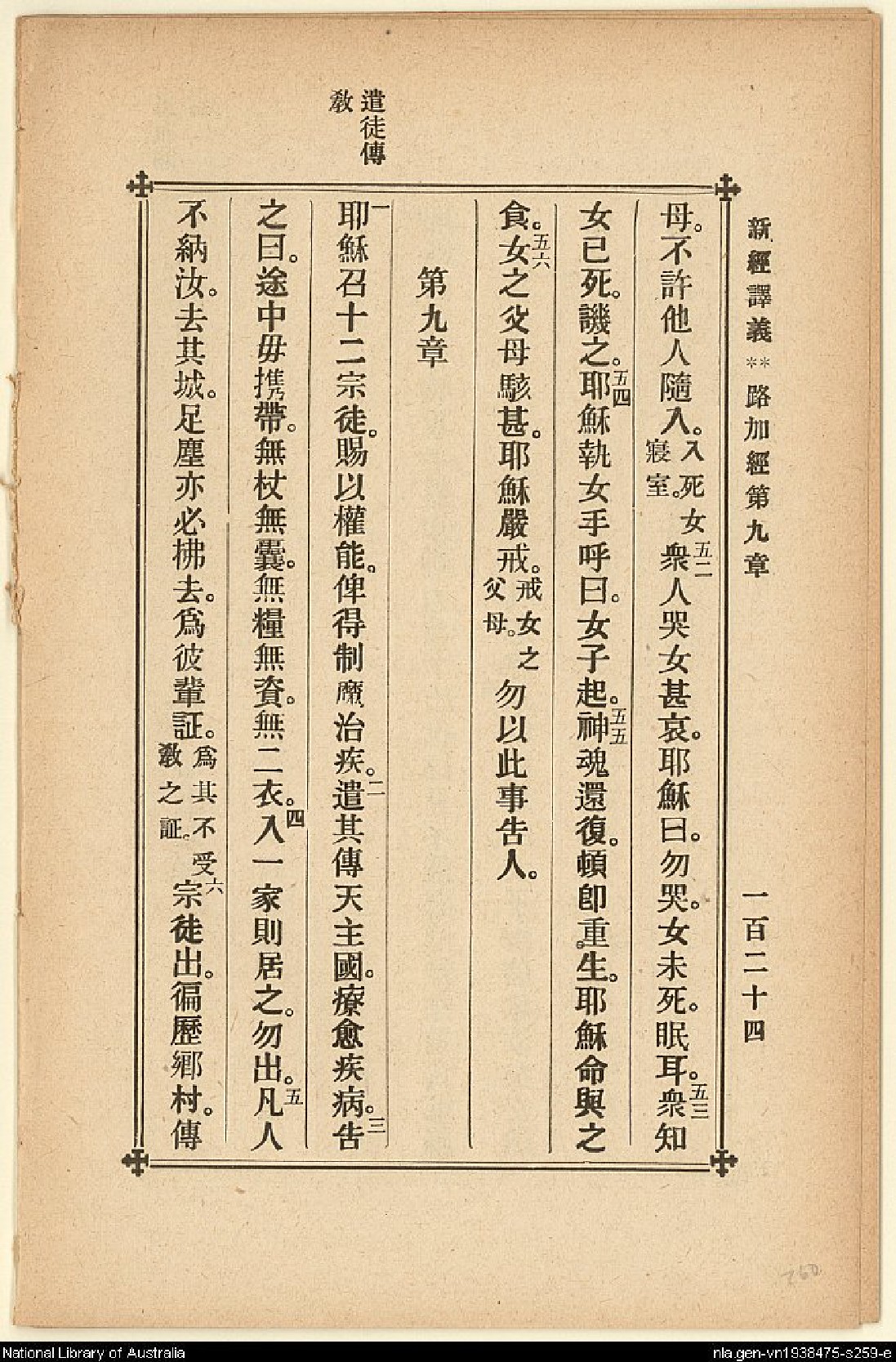 1907年新約四福音(新經譯義) 路加福音 8 章 51 節到 9 章 6 節