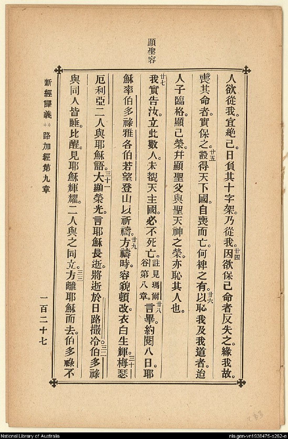 1907年新約四福音(新經譯義) 路加福音 9 章 23 節到 9 章 33 節