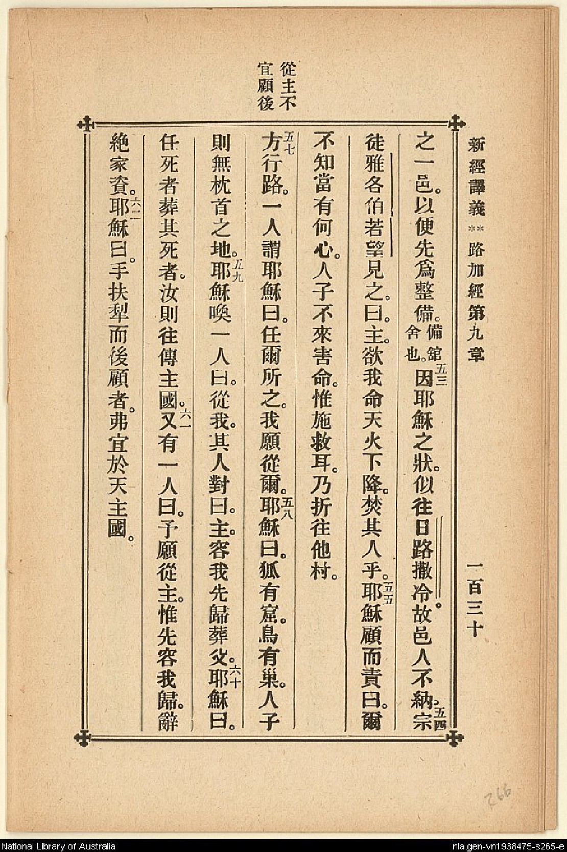 1907年新約四福音(新經譯義) 路加福音 9 章 52 節到 9 章 62 節