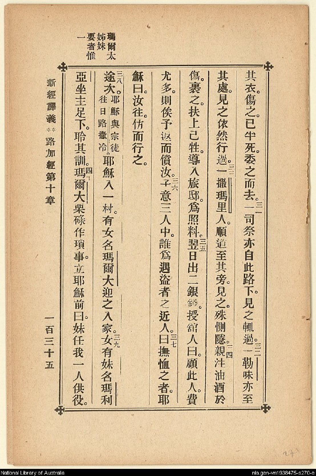 1907年新約四福音(新經譯義) 路加福音 10 章 30 節到 10 章 40 節