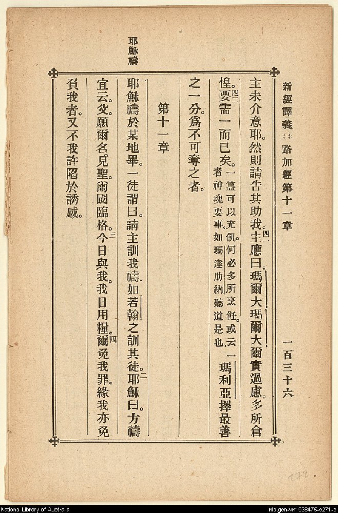 1907年新約四福音(新經譯義) 路加福音 10 章 40 節到 11 章 4 節