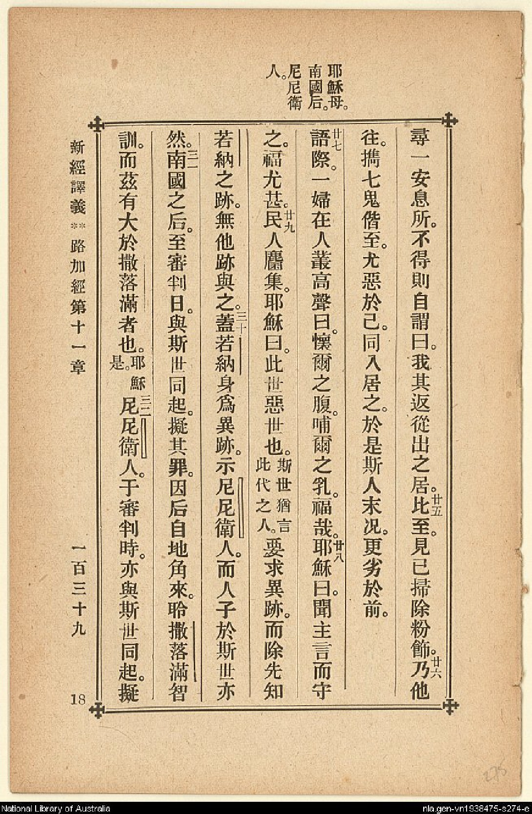 1907年新約四福音(新經譯義) 路加福音 11 章 24 節到 11 章 32 節