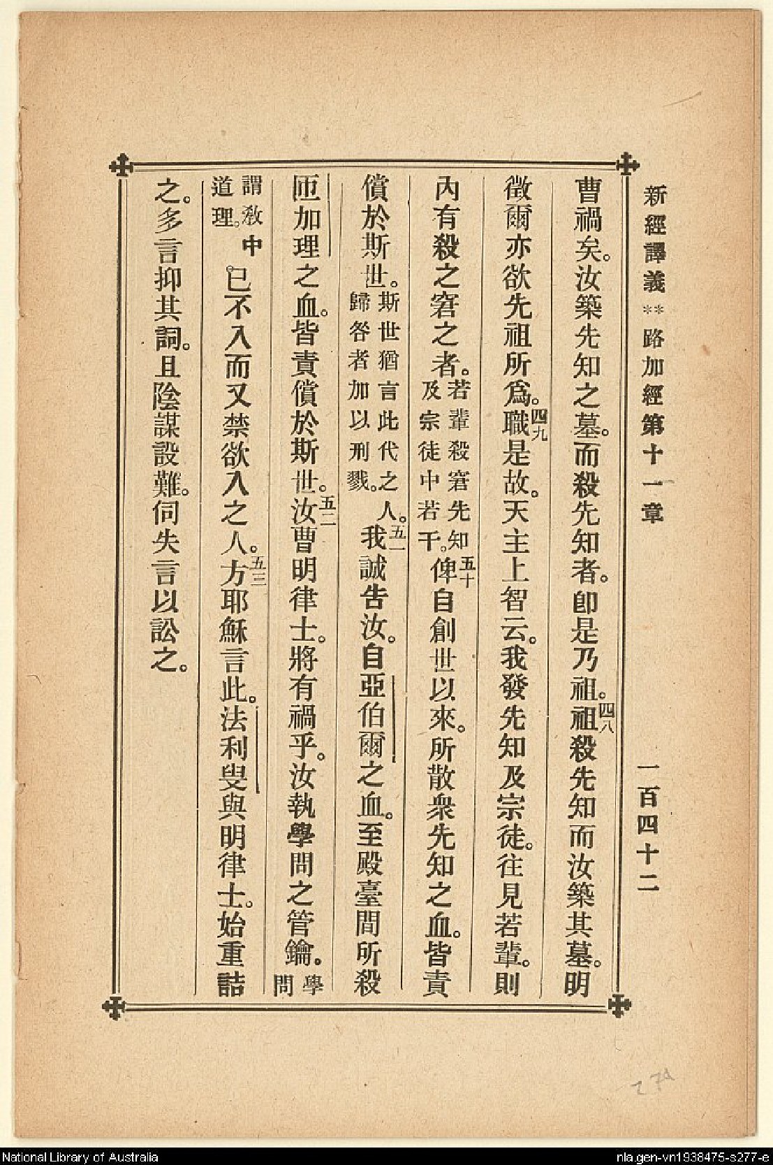 1907年新約四福音(新經譯義) 路加福音 11 章 47 節到 11 章 53 節