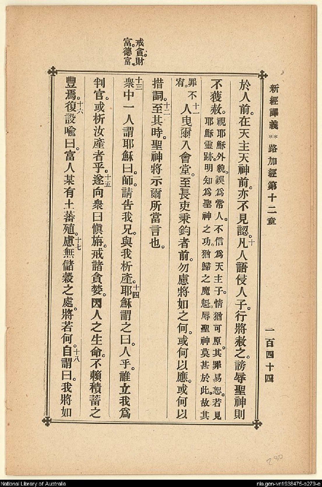 1907年新約四福音(新經譯義) 路加福音 12 章 9 節到 12 章 18 節