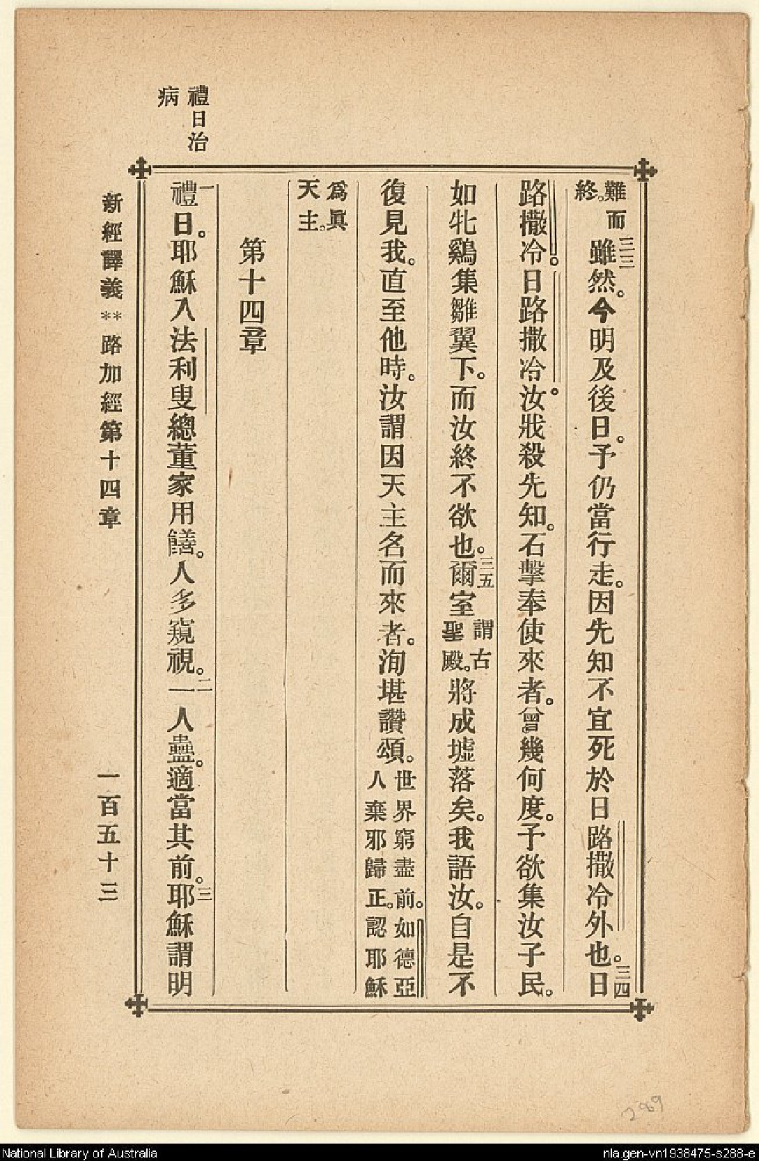 1907年新約四福音(新經譯義) 路加福音 13 章 32 節到 14 章 3 節
