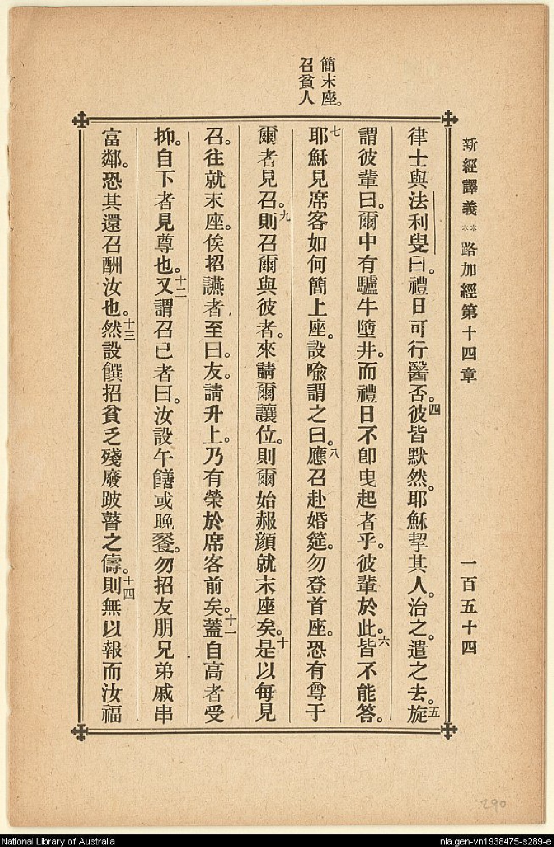 1907年新約四福音(新經譯義) 路加福音 14 章 4 節到 14 章 14 節