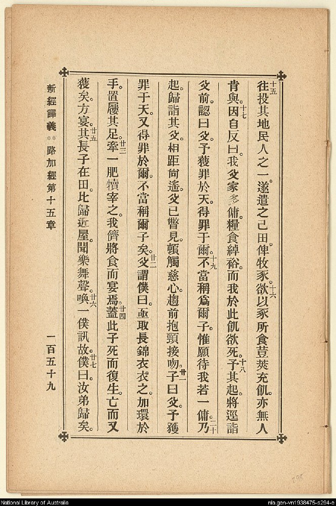 1907年新約四福音(新經譯義) 路加福音 15 章 15 節到 15 章 27 節
