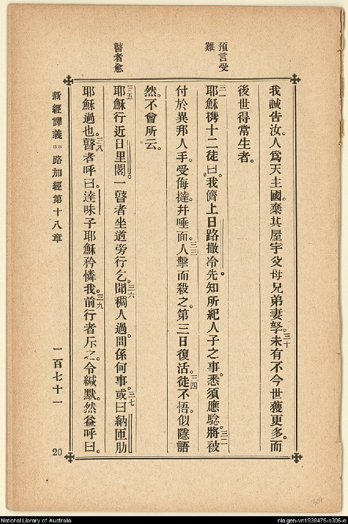 1907年新約四福音(新經譯義) 路加福音 18 章 29 節到 18 章 39 節