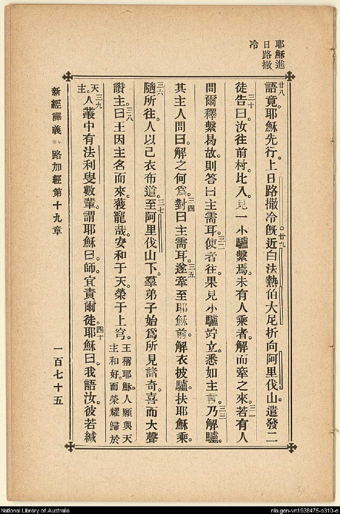 1907年新約四福音(新經譯義) 路加福音 19 章 28 節到 19 章 40 節