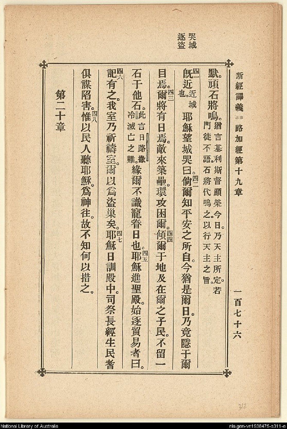 1907年新約四福音(新經譯義) 路加福音 19 章 40 節到 20 章 0 節