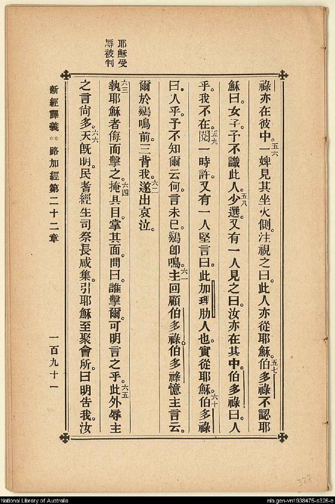 1907年新約四福音(新經譯義) 路加福音 22 章 56 節到 22 章 66 節