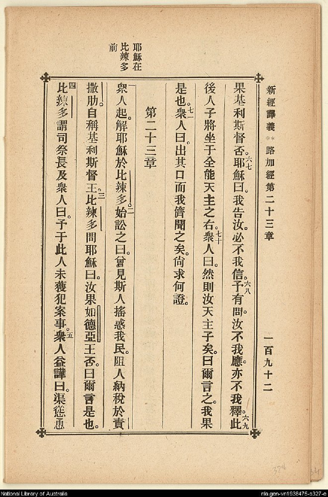 1907年新約四福音(新經譯義) 路加福音 22 章 66 節到 23 章 5 節