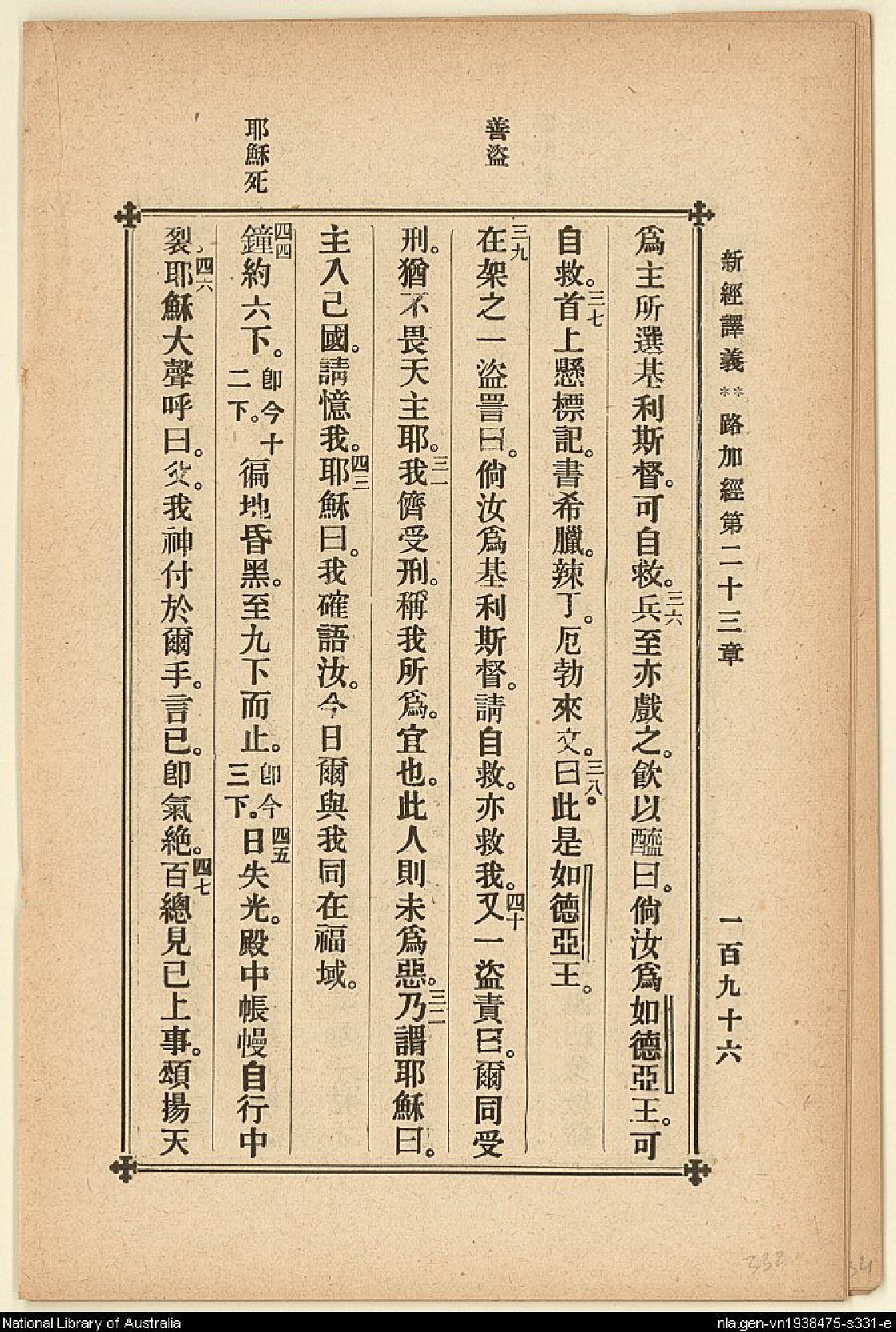 1907年新約四福音(新經譯義) 路加福音 23 章 35 節到 23 章 47 節