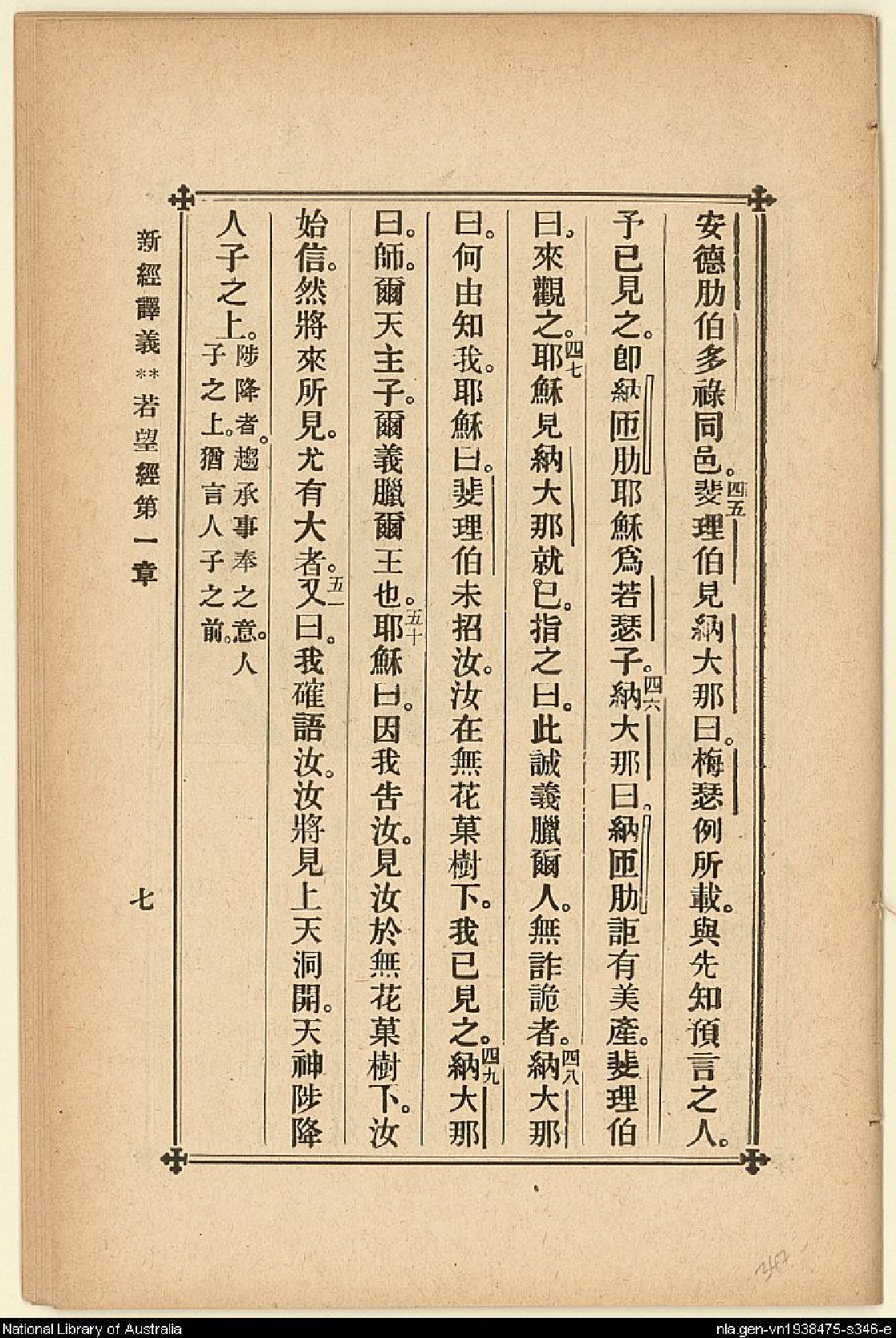 1907年新約四福音(新經譯義) 約翰福音 1 章 44 節到 1 章 51 節