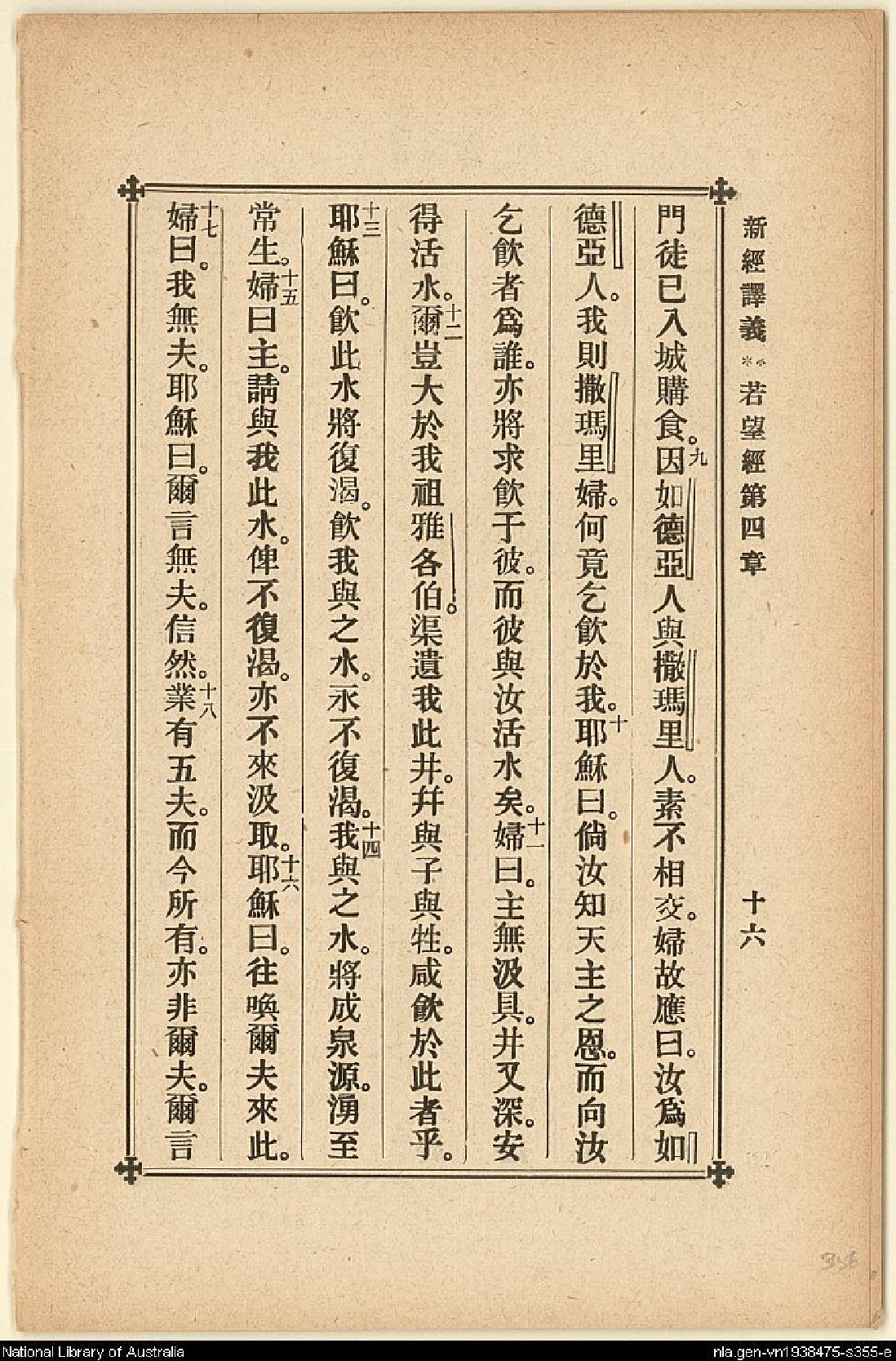 1907年新約四福音(新經譯義) 約翰福音 4 章 8 節到 4 章 18 節